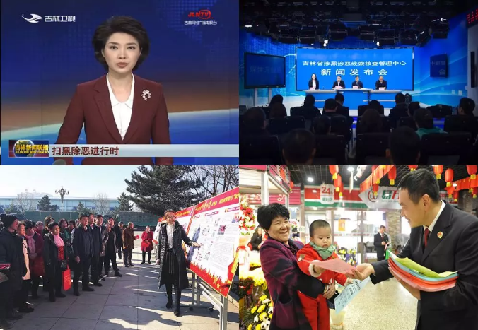 省委宣传部牵头,组建由有关部门精干力量和吉林日报、吉林电视台等主流媒体记者参与的扫黑除恶宣传报道专班,在各级党报和电视台、广播电台开辟《扫黑除恶进行时》专栏,召开5次省级新闻发布会,定期报道专项斗争战果、曝光典型案例、开展政策解读。全省各地在人员密集场所张贴宣传海报、标语、条幅300余万条,发放各类宣传材料8000余万份,在覆盖全省9342个村、1400多个社区的16946个“新时代文明实践站”集中开展宣讲活动,并通过举办文艺演出、有奖知识竞赛等方式提升专项斗争知晓率,着力营造众志成城、同仇敌忾的浓厚氛围。积极顺应互联网时代大趋势,构建以“平安吉林”为龙头的扫黑除恶新媒体宣传矩阵,在“廉洁吉林”、“互联网+公安”、彩练、吉视通、抖音等等群众关注度高的新媒体平台,综合运用图文动漫、短视频等群众喜闻乐见、通俗易懂的方式开展全方位、多元化、多角度宣传,不断提升专项斗争传播力、影响力、公信力。特别是在覆盖全省所有基层党组织、153.5万党员注册使用的“新时代e支部”APP上开辟专栏,实时更新全省专项斗争动态,并设置一键举报、法律问答等功能,让全省党员干部在使用手机上网时,利用碎片化时间加深对专项斗争重要意义的理解、看到扫黑除恶的战果,切实增强扫黑除恶的决心和信心。