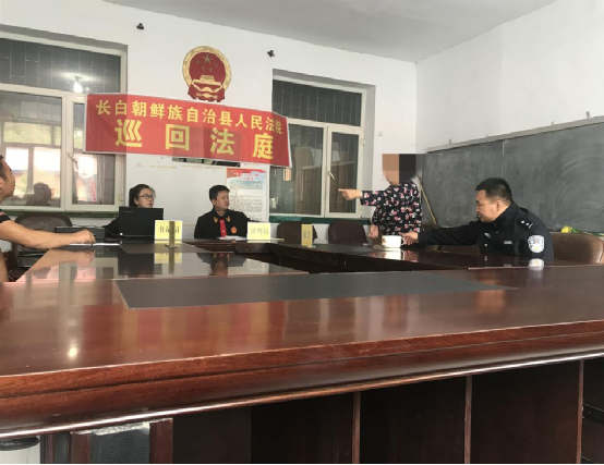 原告杨某为年逾八旬的农妇,患有多种疾病,行动困难。因其丈夫生前曾借给张某2万元,杨某丈夫2017年去世后,张某以种种理由,推脱不还钱,无奈杨某向八道沟人民法庭打电话申请立案,法庭工作人员主动上门为杨某办理了立案手续,并向双方当事人送达传票。在规定的开庭日期来临前,法官运用“无讼村屯,无讼社区”矛盾纠纷化解机制巡回审判。法官联系了杨某所在的村委会,借用会议室作为巡回法庭场所。开庭当日,双方当事人按时来到村委会,在会议室内,法庭的工作人员将巡回审判条幅、国徽悬挂好,审判人员、各诉讼地位当事人桌牌有序摆放整齐,法庭布置虽然简朴,但法庭的庄严和实用功能毫不逊色。在审理中,法官询问程序合法有序进行,双方当事人偶因情绪激愤甚至拍案而起时,值班法警及时制止教育,并要求遵守法庭纪律,举止文明,庭审活动开庭有序。