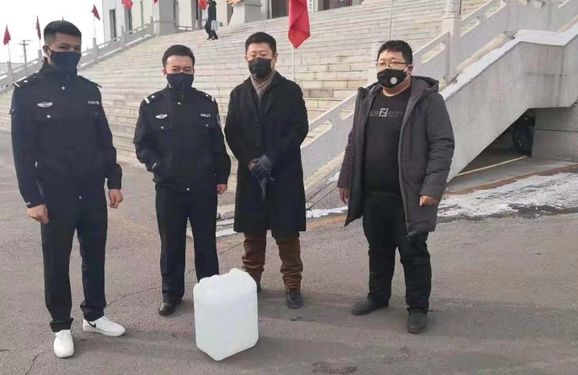 @爱心企业。临江市企业吉林省德容医药有限公司为临江市公安局送来了一桶50斤的医用酒精,国保大队负责人接收了这桶酒精,公司负责人表示:“这桶酒精无偿送给临江市公安局,希望你们在执勤时多注意自身防护。在疫情期间算是贡献自己一份力量,让我们共同携手抗击疫情。”