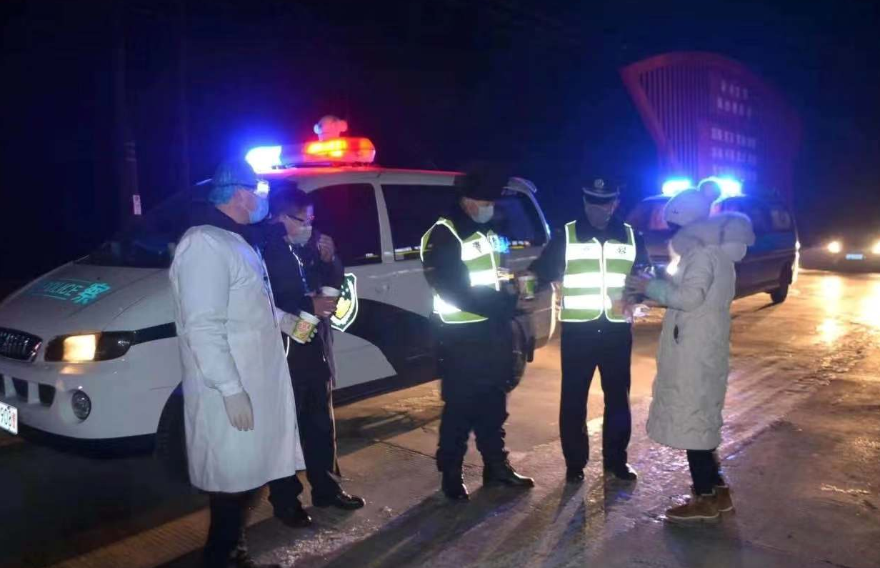 @暖心家庭。晚间的花山公安检查站灯火通明,因为执勤民警要在防疫期间对入城车辆及人员进行登记和体温检测。22时许,一辆白色小轿车缓缓驶来,执勤民警在对车上的一家三口进行登记和体温检测时,司机说:“这么晚了还在执勤呢!真是辛苦了,你们吃饭了么?”民警呵呵笑着说:“我们应该做的,晚上开车慢点。”大约过了半小时后,这辆白色小轿车又驾驶回来停在执勤民警身边,司机快速下车将刚刚回临江购买的20碗方便面和20根火腿肠送到了执勤民警手上,司机说:“大晚上的,天也冷,吃点热乎面暖和暖和,多注意保护自己。”转身上车又返回了临江。