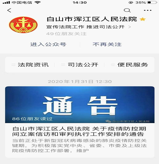 “疫”战到底 戮力前行——白山两级法院积极稳妥做好应对疫情防控工作