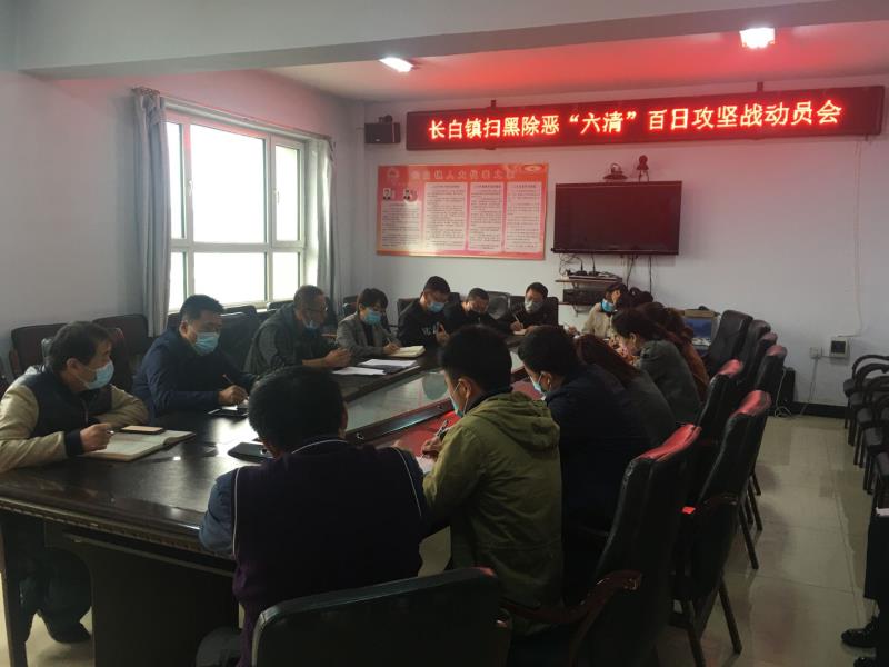 会议传达了全县动员大会会议精神,宣读下发了《长白镇扫黑除恶“六清”百日攻坚战实施方案》和《长白镇开展“行业清源”专项整治方案》,明确了时限要求,将每一项任务分解落实到相关责任站所,定期调度,做到周盘点、月调度、件件有着落,事事有回音,确保了工作时效。