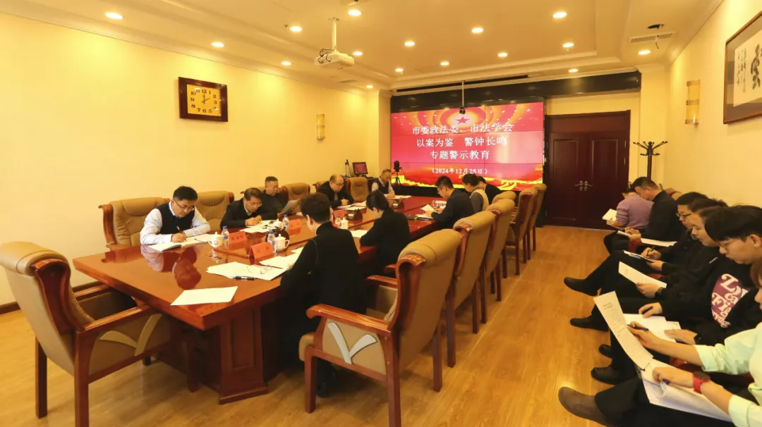 12月25日下午,白山市委政法委机关、白山市法学会以“以案为鉴、警钟长鸣”为主题,召开专题警示教育大会。组织机关党员干部集中学习中央政法委、省委政法委印发的典型案例和省委政法委关于加强政法队伍纪律作风建设的通知精神以及中央政法委《关于完整准确执行防止干预司法“三个规定”的重点难点问题答复意见》,深入剖析相关典型案例,教育广大党员干部以案为鉴、以案促改、以案促治,持续推动市委政法委机关、市法学会纪律作风建设走深走实。