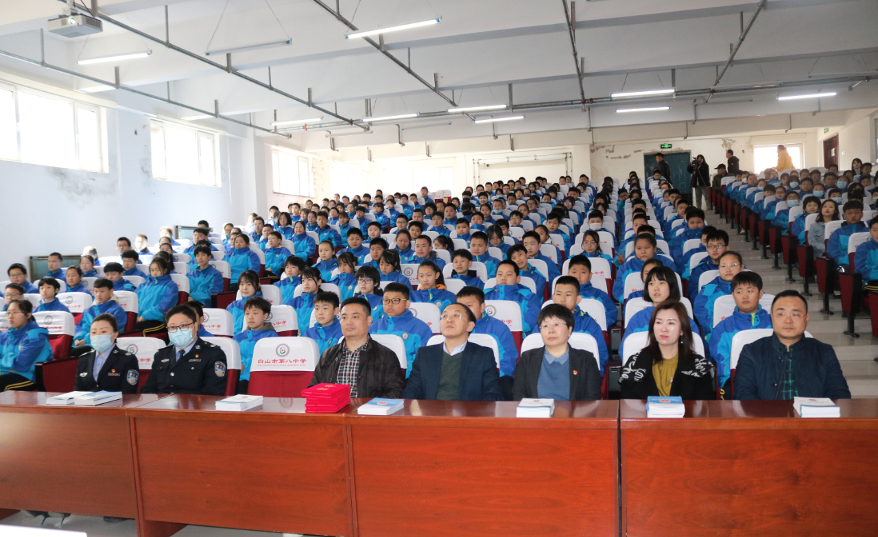 启动仪式在学校一楼的阶梯教室里举行,“春苗行动”就这样在师生代表的见证下,在白山市第八中学这片希望的沃土落地生根。仪式上,校领导为司法行政干警颁发了“心理辅导员”聘书,大家共同观看了普法宣传片,学习了《民法典》知识讲座,还为学校赠送普法书籍500余本。