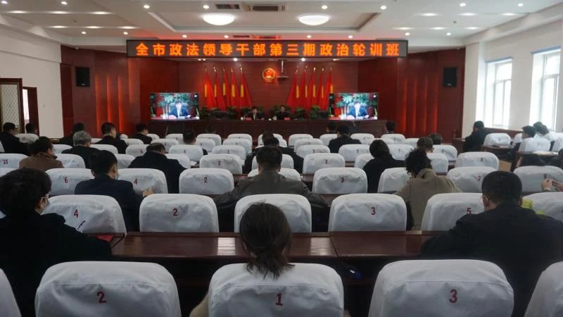 市委政法委、市法学会、市直政法单位领导班子部分成员以及中层干部在主会场参加政治轮训。各县(市、区)党委政法委和政法单位领导班子成员在各自分会场参训。