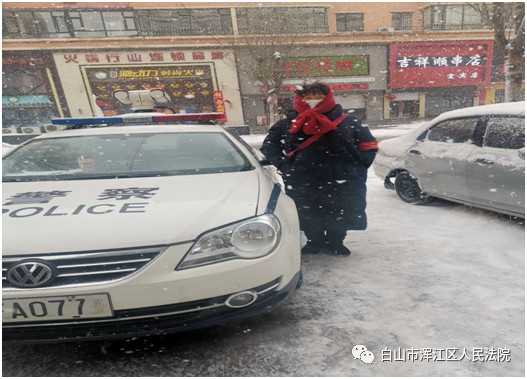白山市浑江区人民法院自接到防控新型冠状病毒肺炎疫情工作以来,干警们承载着热心群众的关爱,审判和防疫两不误,发挥着共产党员的先锋模范作用和公职人员的带头示范作用,在寒风中伫立、值守!