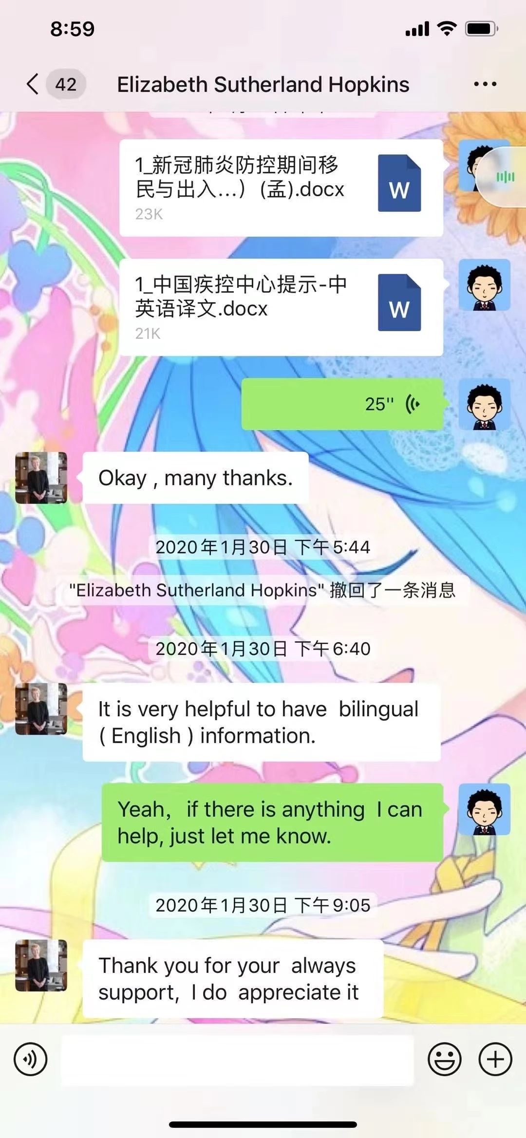 在疏散游客时,有许多外国游客由于语言不通,搞不清究竟发生了什么事,心中很是恐慌,更不知道如何配合度假区工作。秘端了解情况后,就逐一与外国游客沟通,为他解答疫情的相关问题。了解情况的外籍游客情绪很快稳定下来,积极配合度假区开展疫情防控工作。而面对度假区内的常驻外籍员工,秘端也第一时间将移民局相关要求传达到位。澳大利亚籍员工伊丽莎白·丽莎,是度假区凯悦柏悦酒店的总经理,由于语言不通,秘端经常为其解释相关要求,并对文件政策进行说明,此次疫情期间移民局对外籍人员的管控要求丽莎不是很清楚,秘端简要说明了几点,丽莎立即表示无条件配合疫情防控工作。