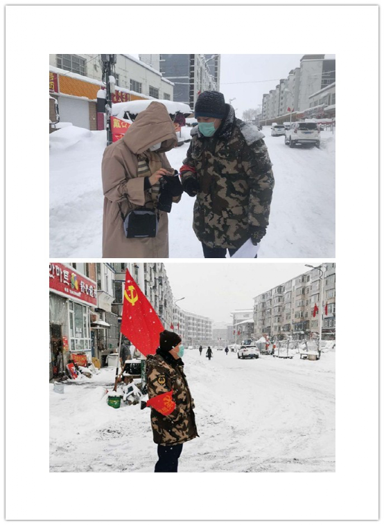 新年期间,民事审判庭有两名干警家中的老人生病,孩子年幼需要人照顾,但他们舍小家为大家,积极投入到了辖区内的防疫设卡工作,面对零下20多度的恶劣天气坚持和其他干警不畏严寒,与疫情赛跑,以坚韧不拔的毅力与疫情作斗争。在卡点上,干警们还积极主动帮忙解决社区群众生活中遇到的问题,为年龄较大的大妈去农贸市场购买生活日用品,对个别对防疫工作有抵触情绪,不予配合的群众,心态平和细心向他们讲解防控的重要性,耐心进行疏导,由于法院法官干警工作到位,得到了过往卡点群众的理解,大家均积极主动配合防疫检查。