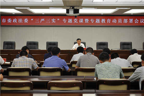 坚持群众路线 践行“三严三实” 以良好作风推动政法工作水平实现新提升——市委政法委召开“三严三实”专题党课暨专题教育动员部署会议