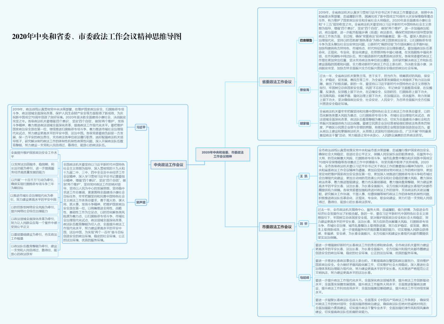 针对疫情期间尽量减少人员聚集的要求,为向政法干警全面准确传达中央及省委、市委政法工作会议精神,区委政法委创新宣传方式,制作《2020年中央和省委、市委政法工作会议图解》,运用政法新媒体矩阵统一口径、统一发布,开展网上宣传学习,确保全区政法干警人手一份、应学尽学。同时,对中央和省市区关于疫情防控工作部署要求进行及时传达。