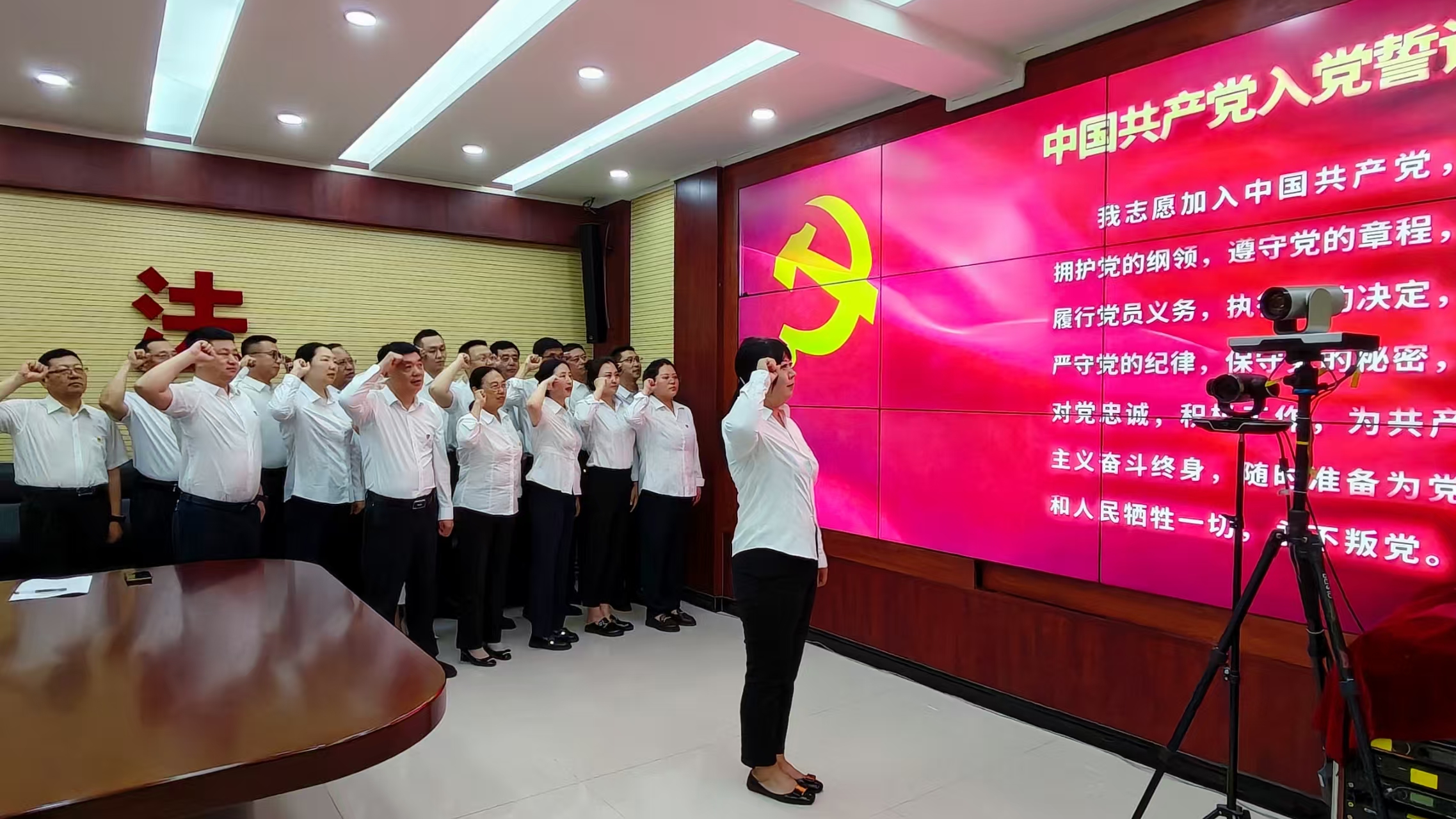 在庄严的党旗下,全体党员高举右拳,重温入党誓词。表达对党的无限忠诚和为党的事业奋斗终身的坚定决心。