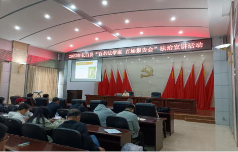 为深入学习宣传党的二十大精神,营造良好的法治化营商环境,推动《民法典》学习宣传往深里走、往实里走、往心里走,5月30日上午,白山市委政法委、市司法局、市普法领导小组办公室、市法学会在长白县举办“百名法学家百场报告会”巡回法治宣讲活动,此次宣讲由县委政法委常务副书记尤晨光主持,全县各级机关干部、普法工作者、“法律明白人”等100余人参加讲座。同日下午,县委政法委、县司法局、县普法领导小组办公室、县法学会以市级“双百”法治宣讲活动为契机,开展长白县“百名法学家百场报告会”法治宣讲活动,县司法局局长王德连主持宣讲活动。