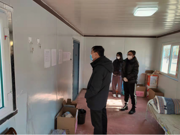 (3月16日下午,于啸洋书记到隔离宾馆室内进行检查)