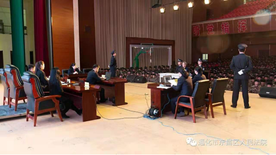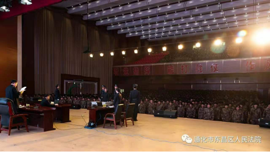 3000余名官兵应声起立,动作整齐划一,庄严的庭审,在威武肃穆的军营中进行显得尤为庄重。
