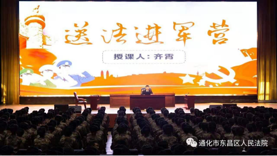 为进一步服务军队法治建设,有效促进军民融合,普及官兵宪法法律知识,帮助官兵解决涉法问题,更好服务改革强军大局。11月27日在通化市两级法院的领导安排下,通化中院办公室主任商文宏与东昌区法院刑事庭法官吕晶、齐霄一行人来到通化驻军某部驻地开展现场庭审、法律大讲堂等送法进军营活动。