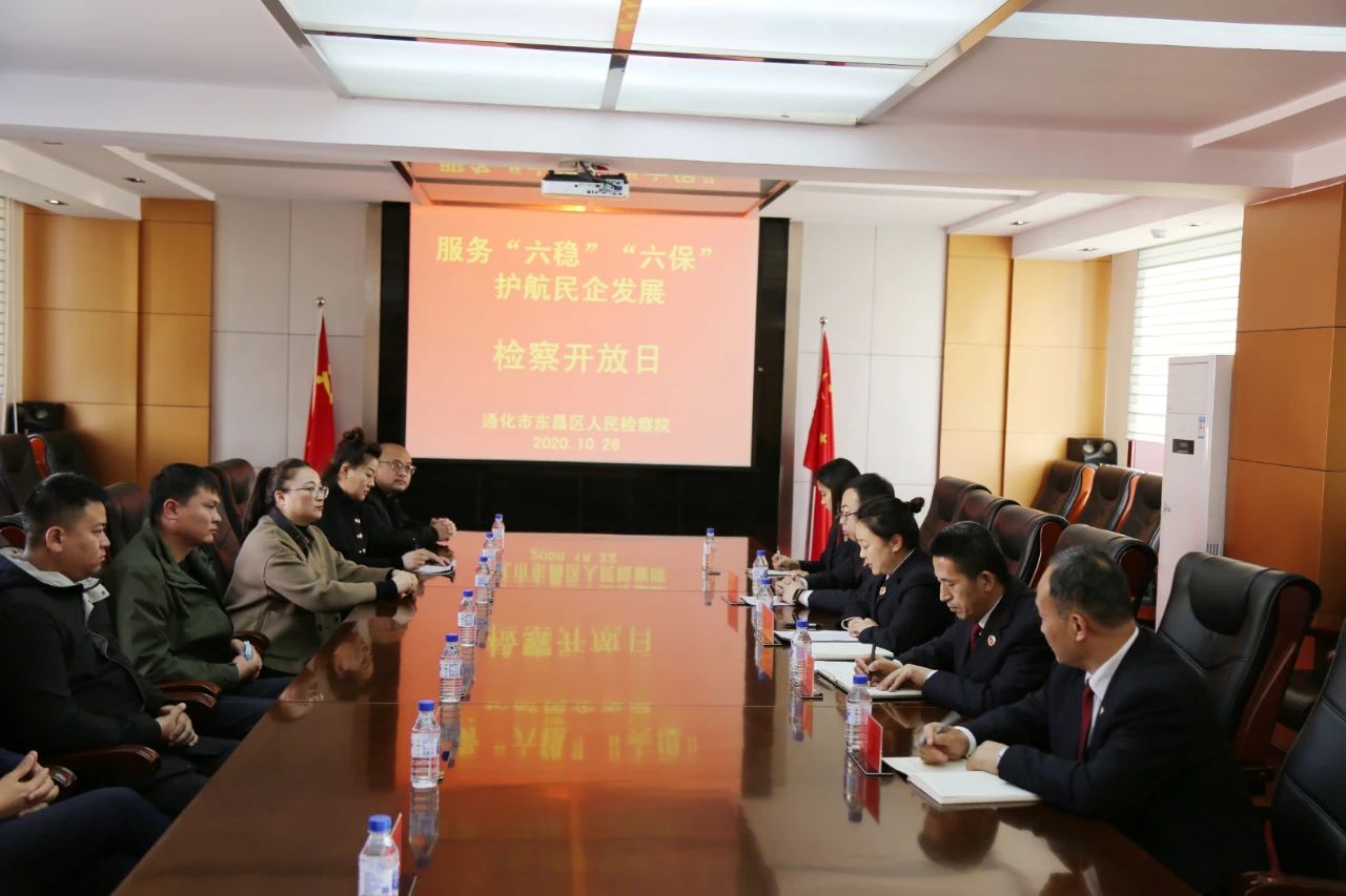 为充分保障民营经济健康发展,让民营企业切实感受到司法温度,10月26日,通化市东昌区人民检察院举以“服务‘六稳’‘六保’护航民企发展”为主题的检察开放日活动,邀请区人大代表、区政协委员、区工商联代表以及东昌区民营企业家代表等7名代表走进检察机关,零距离接触检察工作,与代表们进行座谈,认真听取他们对检察工作的意见和建议,为民营经济高质高效发展保驾护航。