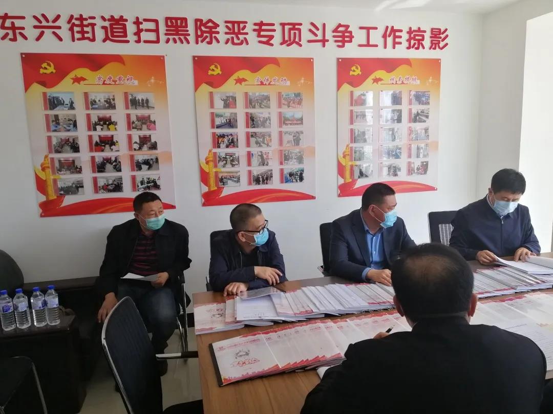 王代刚书记一行首先查看了扫黑除恶相关的登记台帐,之后在东兴街道会议室听取了东兴街道党工委书记张春洪就扫黑除恶专项斗争工作开展以来情况的汇报。