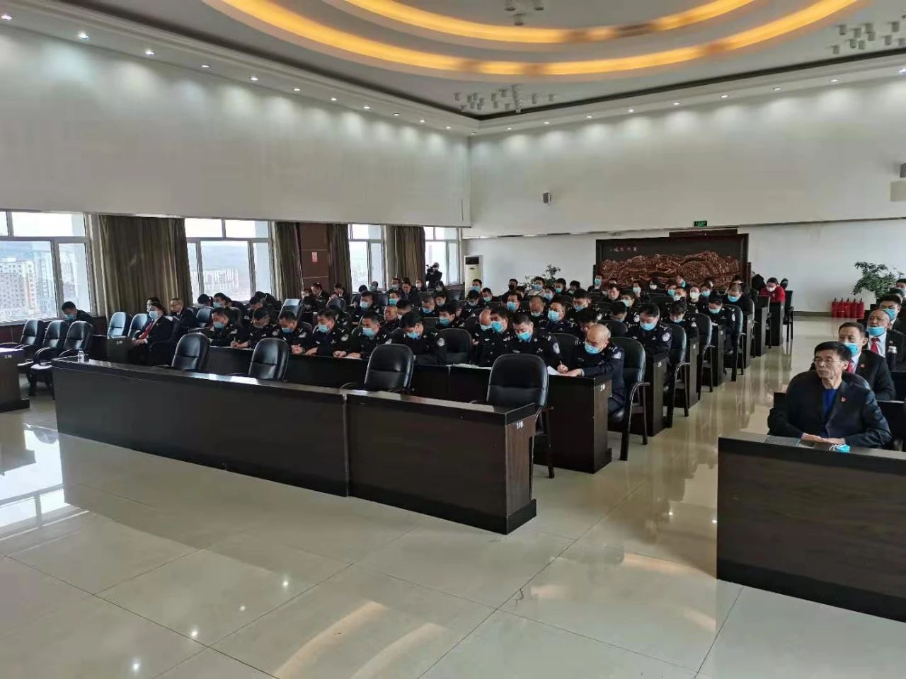 会议由区政法队伍教育整顿领导小组副组长、区委常委、政法委书记门庆军主持,区政法队伍领导小组副组长闫冰、杨学武以及区纪委监委、全体政法单位班子成员、中层以上领导干部、部分干警参加会议,并集中观看了警示教育片《警钟》。