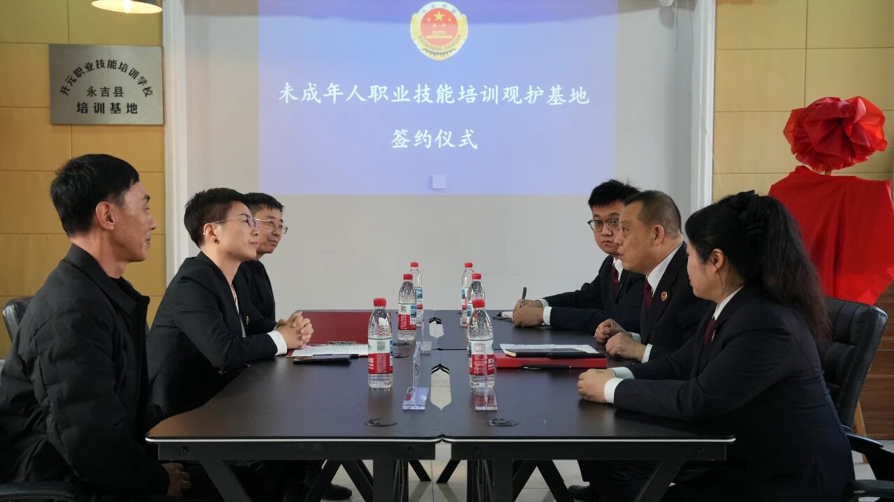 为深入贯彻《中华人民共和国未成年人保护法》《中华人民共和国预防未成年人犯罪法》,落实“教育、感化、挽救”方针,近日,永吉县人民检察院与永吉县开元职业技能培训学校正式签约,共同建立罪错未成年人职业技能培训观护基地,为罪错未成年人搭建起“学技能、明法治、促就业”的回归之路。