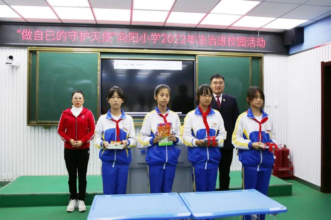 活动最后,副检察长翟跃、向阳小学副书记李巍共同向学生代表赠送法治宣传手册和“绿书签”。