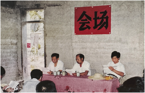 △1989年7月19日,习近平在福建寿宁县下党乡调研并召开现场办公会。会场设在小学里,台上是一张桌子、三把椅子,铺在桌上的是村民从家里拿来的床单。