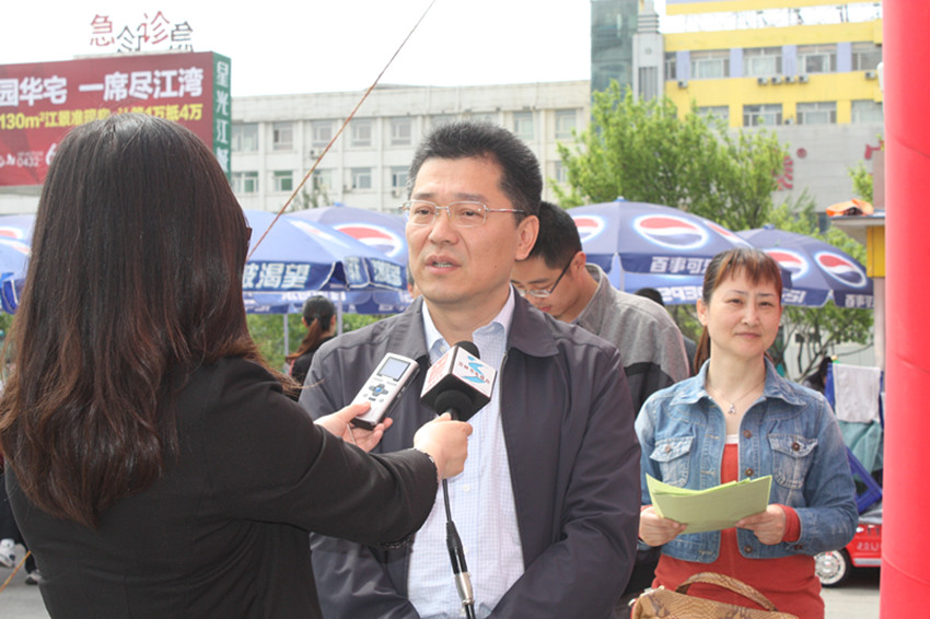 市金融办蔡主任给市民讲解本次活动的意义和有效部署。