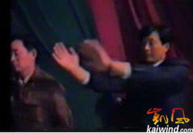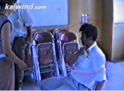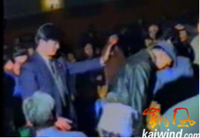 ▲培训班上李洪志现场演示功法动作及《学员证》