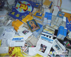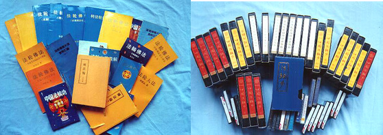 ▲徐祥兰、王汉生印制的“法轮功”书籍及录像带