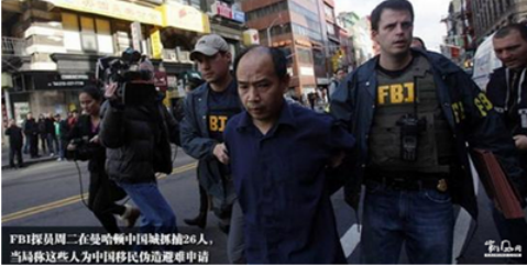 ▲美国警方拘捕伪造“法轮功”移民避难申请的人员