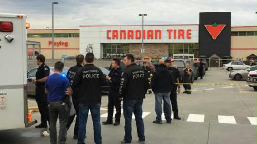 随着几声枪响,一名身形巨大着迷彩服的男子倒在血泊中。2016年11月10日下午三时许,一名男子闯入加拿大温哥华市Bentall St. 2830号的Canadian Tire店,企图抢夺店内枪械,并刺伤一名店员,在逃走时又挟持一名82岁顾客为人质。接到报警的警察来到案发现场,在抓捕这名男子时,一名警察头部被刺中数刀,最后警察连开数枪,将这名歹徒击毙。