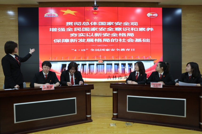 吉林市龙潭区人民法院在全院组织干警进行国家安全知识自主学习,通过学习手册、公众号、LED屏幕滚动播放相关知识等多种方式进行学习,进一步提升干警维护国家安全的思想自觉。