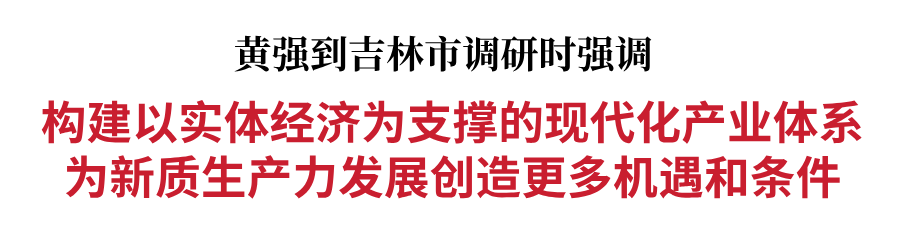 调研中,黄强强调,推动高质量发展,必须把着力点放在工业上、放在实体经济上。要扎实推进科技创新和产业创新深度融合,推动产业高端化、智能化、绿色化转型。要聚焦产业技术“卡脖子”问题,围绕吉林能做什么、善于做什么,认真梳理清单,逐项攻坚突破,对相关领域重点企业,要超常规最大力度精准支持。要深入推进国有企业改革,充分发挥党的领导这一最大优势,让国有企业在发展新质生产力、推动高质量发展中更好担当重任。同时,要坚持底线思维和极限思维,更好统筹发展和安全,切实以高质量发展促进高水平安全、以高水平安全保障高质量发展。