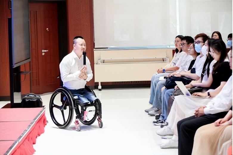 上图为2011年4月25日,为备战伦敦残奥会加紧训练的代国宏。下图为2023年5月,作为四川残疾人励志报告团成员的代国宏走进北京大学,与学生交流。