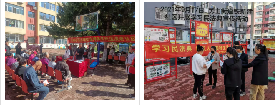 丰满区法学会与区法院组织法官在滨江东路、万科等繁华区域,举办“同创文明城市,共享美好家园”法治宣传活动。通过摆放宣传展板、发放倡议书150份、法治书籍560余册,同时,普法志愿者围绕环境保护、预防网络诈骗、民法典等内容,进行现场案例讲解、进行相关法律咨询服务32人次,让居民群众更加真实、生动地认识民法典实施。