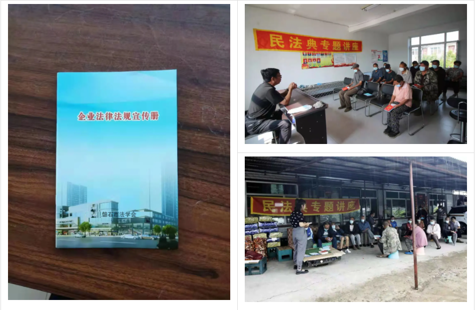 桦甸市法学会组织全市各基层法律服务工作站工作人员深入各乡镇、街道面对面听取群众对基层法律服务工作站的意见,并向群众发放《民法典》等普法资料,本次活动共发放《民法典》1000本,各类普法宣传手册4000余份。同时,全市基层法律服务志愿者700余人深入全市各乡镇、街道、村、社区,通过悬挂宣传标语、提供法律咨询、法治讲座、设立咨询台等形式,向百姓重点宣传了民法典、未成年人保护法和妇女、老年人权益保障法等一系列针对性强、与群众生活息息相关的法律法规。为百姓讲解有关民间借贷、非法集资、劳务合同、婚姻家庭等方面的真实案例,积极引导群众树立法治思维,坚持尊法学法守法用法,运用法律武器维护自身合法权益。基层志愿者一对一为咨询对象解疑释惑,让老百姓通过法律帮助自己走出困境。