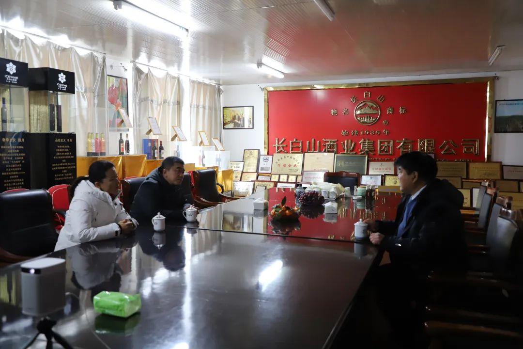 在长白山酒业集团有限公司,调研组深入酿酒车间,对酒厂历史、窖龄、窖藏量、葡萄种植、技术研发等逐一询问。倾听企业在经营和发展过程中相关问题、诉求及新一年的工作规划安排和发展思路。