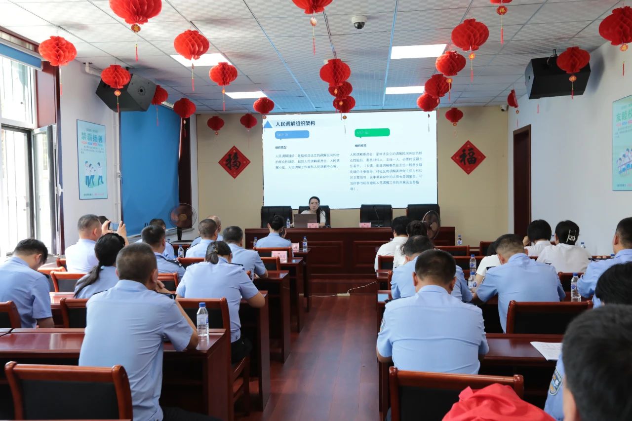 仪式结束后,市公安局法制支队、市拘留所班子成员及相关民警,外县(市)公安局分管领导、拘留所所长及相关民警代表共同参观了市拘留所驻所人民调解室。随后,丰满区司法局围绕如何开展人民调解工作进行专题培训,为参会人员传授调解技巧与实务要点,既增进了对人民调解工作的认知理解,也强化了多元纠纷解决机制的实践运用能力,为基层矛盾化解工作筑牢专业根基。