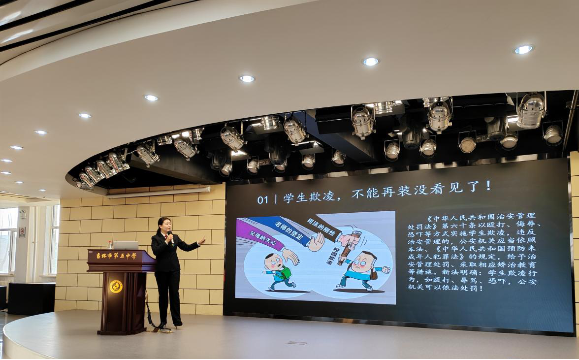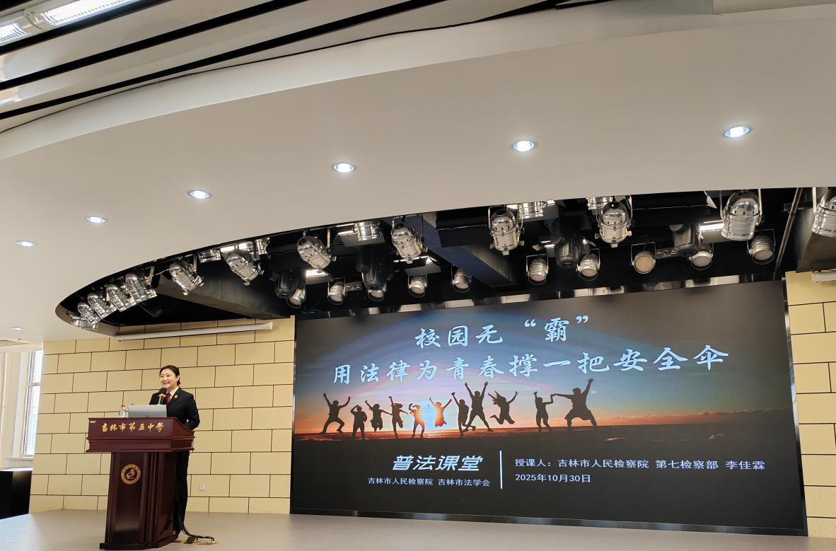 10月30日,吉林市法学会联合市检察院走进吉林市第五中学,开展了一场主题为“校园无‘霸’:用法律为青春撑一把安全伞”的法治教育讲座。