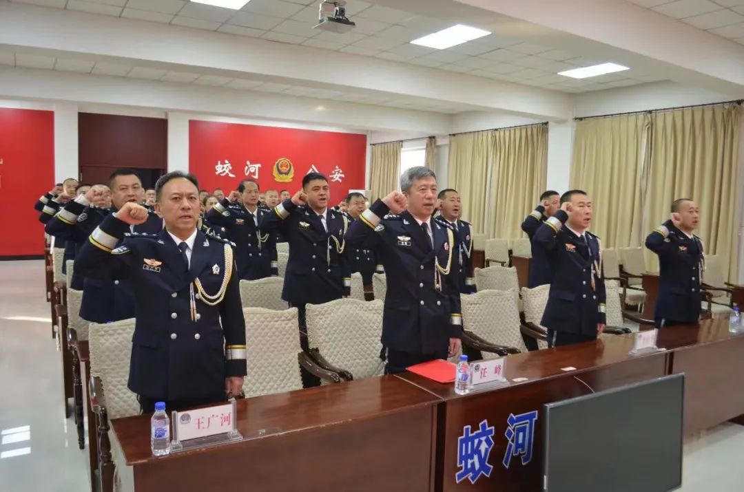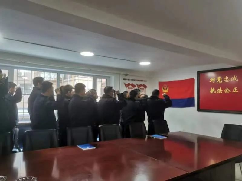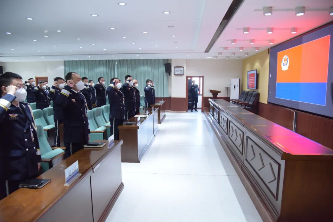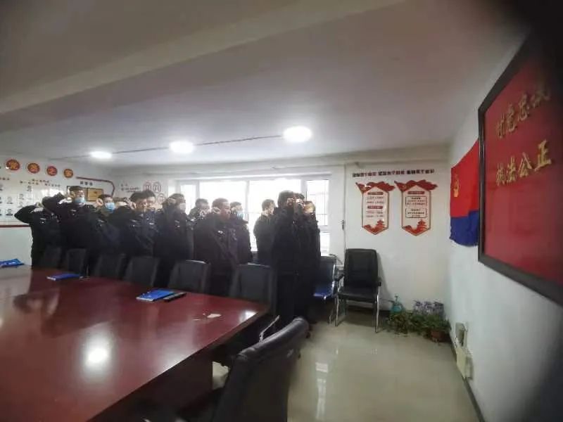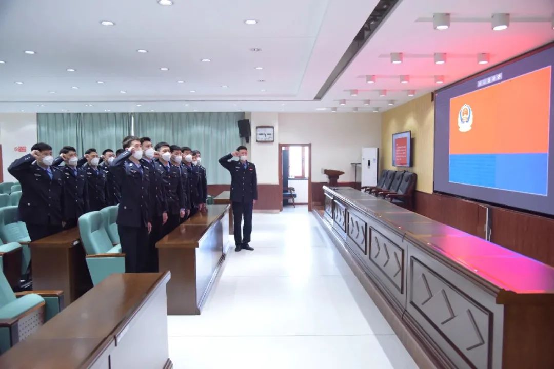 上午9时,伴随着嘹亮的中国人民警察警歌,全体民警庄严肃立,目视党旗和警旗,振臂握拳,重温入党和入警誓词,用铿锵有力的誓言表达了对党和公安事业的无限忠诚与热爱,展示了公安机关深入学习贯彻党的二十大精神焕发出来的新气象、新面貌。