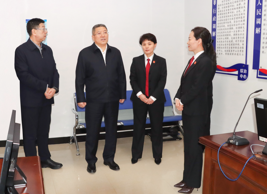 伊通县综治中心与县信访局合署办公,依托信访接待大厅设置八个功能室。李明伟详细了解每个功能室人员配备、调解流程、办结效果以及常驻、轮驻单位发挥作用情况,指出综治中心是服务群众的窗口、化解矛盾的前沿、维护稳定的阵地,要强化规范建设,健全完善流程,让矛盾纠纷从受理、流转、办理、督办等环节形成闭环。要强化依法办事,综治中心干部要懂政策、懂法律、懂业务、会做群众工作,让群众诉求在综治中心依法得以解决,做到案结事了人和。要强化科技赋能,提高信息化设备使用效率,用心用情用力帮助群众解决急难愁盼问题。要强化协同联动,党委政法委统筹协调,推动常驻、派驻部门密切配合、形成合力。