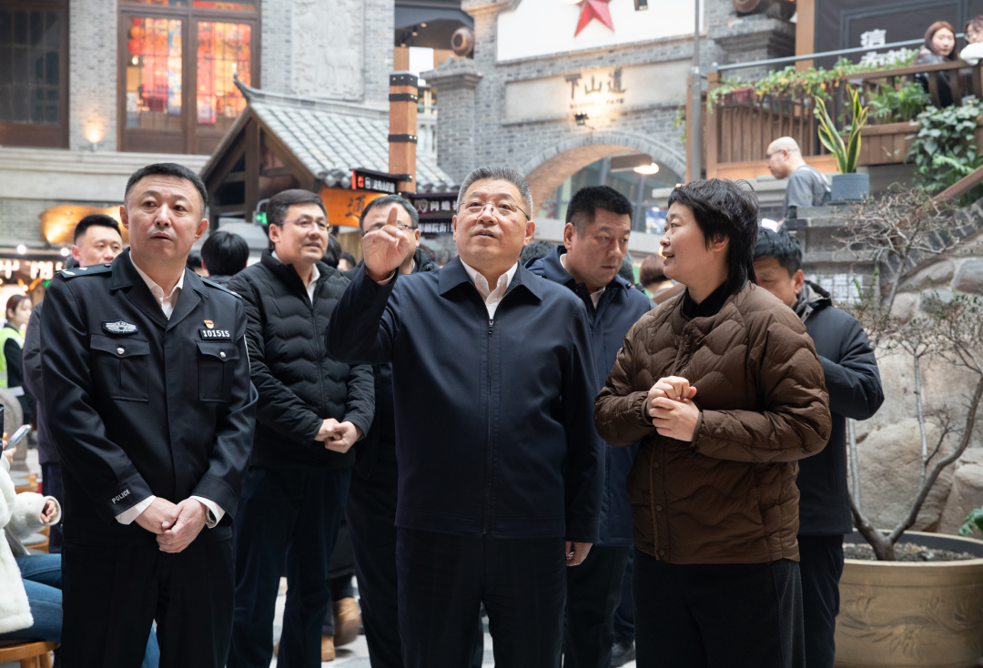 这有山位于长春市红旗街商圈,商场人员密集,流动性大。李明伟详细了解节日期间秩序维护和安保措施落实情况,指出要时时监测人流变化,制定峰值疏导方案,在出入口、消防通道等关键点位动态布警,严防发生拥挤踩踏等事故。期间,李明伟还与商场经营业主交流,听取他们对政法机关的意见建议,并向他们送去节日祝福。
