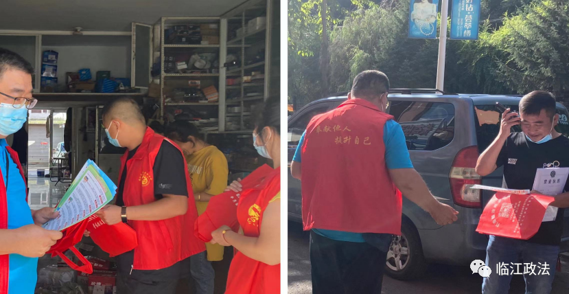 8月24日,临江市委政法委、市法学会联合包保小区网格长对包保小区居民和门店商铺开展普法基层行法治宣传文明实践活动。