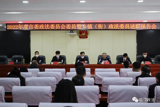 1月12日,临江市召开2022年度市委政法委员会委员暨乡镇(街)政法委员述职报告会。会议贯彻落实《中国共产党政法工作条例》,进一步强化党对政法工作绝对领导,按照《中共吉林省委政法委员会委员述职规则》及省委政法委关于《做好乡镇(街道)政法委员工作的指导意见》要求听取市委政法委员会委员、乡镇(街)政法委员履职情况,交流经验做法,谋划2023年工作。