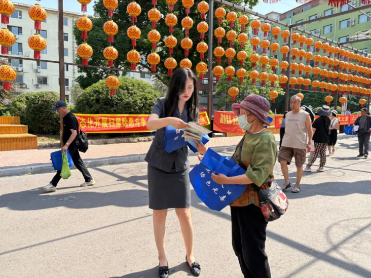 活动现场气氛热烈,干警们积极投入宣传工作。他们向过往群众发放精心印制的宣传单和环保购物袋,上面详细阐述了《中华人民共和国反有组织犯罪法》的相关内容。宣传内容紧紧围绕法律的核心要义,深入浅出地向公众阐释什么是有组织犯罪、什么是黑恶组织,让群众对黑恶势力的概念有了清晰的认知。此外,干警们还着重告知群众,在遭遇黑恶势力时,如何通过合法有效的途径维护自身合法权益,以及发现涉黑线索时,应如何向相关部门提供线索。