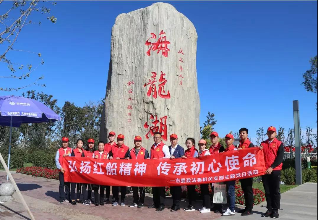 9月22日,按照全市“不忘初心、牢记使命”主题教育实施方案安排部署和“九个一”工作要求,市委政法委党支部组织全体党员干部来到海龙湖公园,开展“弘扬红船精神,传承初心使命”主题党日活动,以海龙湖游船为媒介,重温了98年前嘉兴南湖红船上那光辉灿烂的一幕。