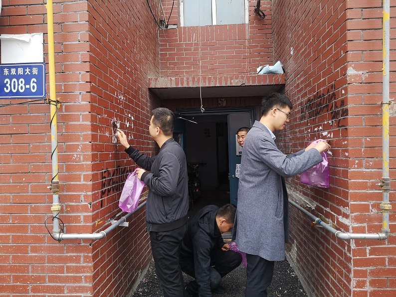 为了让小区居民有一个干净的居住环境,10月10日,双阳区政法委机关干部到城中小学家属楼,清理墙体小广告,经过一个多小时的清理,小区楼道与门口外墙体,都重新变得干净如新,得到了小区居民的好评。