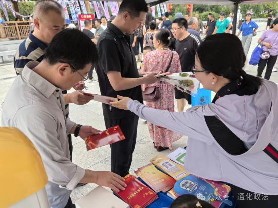 今年以来,柳河县法学会不断创新宣传内容和模式、倾心打造宣传亮点和品牌,在全社会努力营造学法懂法守法用法的浓厚氛围,不断扩大法治文化建设覆盖面,更好地弘扬社会主义法治精神。8月10日,柳河县法学会结合县直机关党工委组织的“联学共建爱心义卖”活动,组织青年普法志愿者在衍庶街开展《反有组织犯罪法》、《民法典》、反邪教等法律宣传活动。