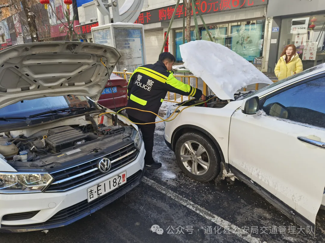 暖心警事|车辆亏电难启动 民警暖心“搭线送电”"/>