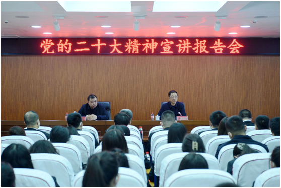 报告会上,杨文胜以“以新发展新气象新担当新作为谱写新时代政法工作新篇章”为题,结合二十大报告精神及学习体会,紧紧围绕深刻把握党的二十大的重大意义、过去五年的工作和新时代十年的伟大变革、开辟马克思主义中国化时代化新境界的历史责任、新时代新征程中国共产党的使命任务、中国式现代化的中国特色和本质要求五个方面进行了系统宣讲和深入解读。报告内容丰富,思想深刻,既有理论高度又有实践深度,让与会人员更加深切的体会到党的二十大精神的深刻内涵和现实意义。