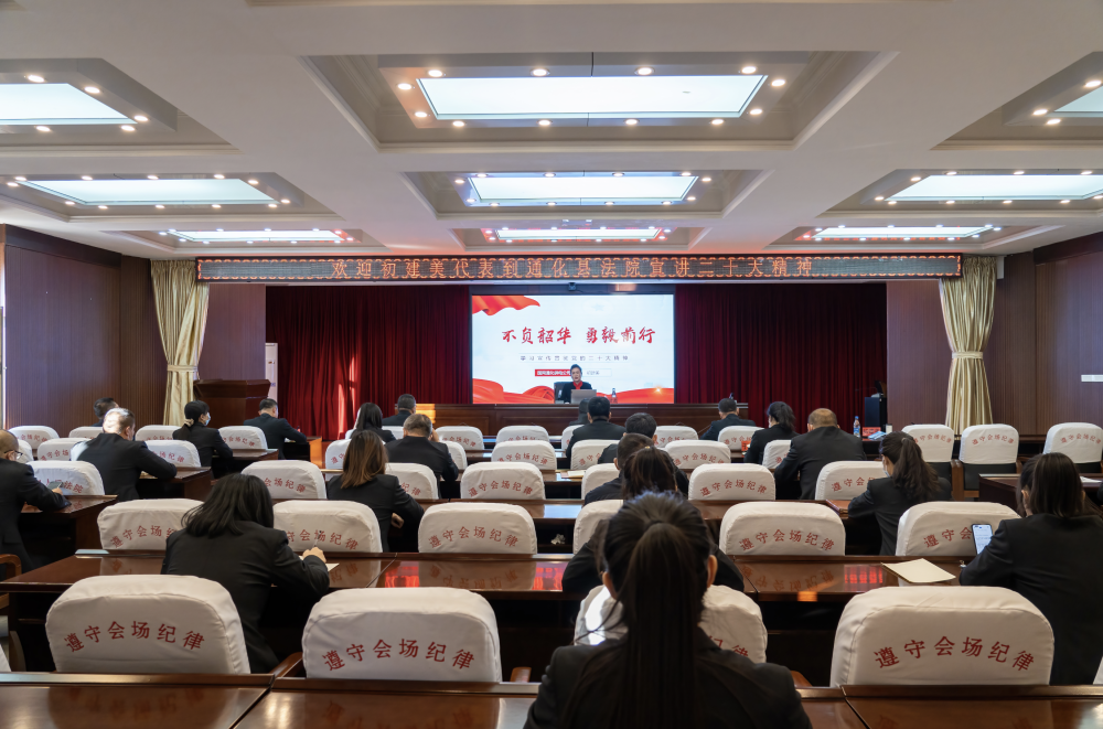 宣讲现场,初建美代表以《不负韶华 勇毅前行》为题,围绕深刻认识党的二十大主题及主要成果,过去5年的工作和新时代10年的伟大变革、中国式现代化的中国特色、本质要求和重大原则,全面建设社会主义现代化国家的目标任务等五个方面对党的二十大精神进行了全面宣讲和深入阐释,并深刻阐述如何把二十大精神外化于行,立足岗位永远跟党走,让在场的党员干警受益匪浅。